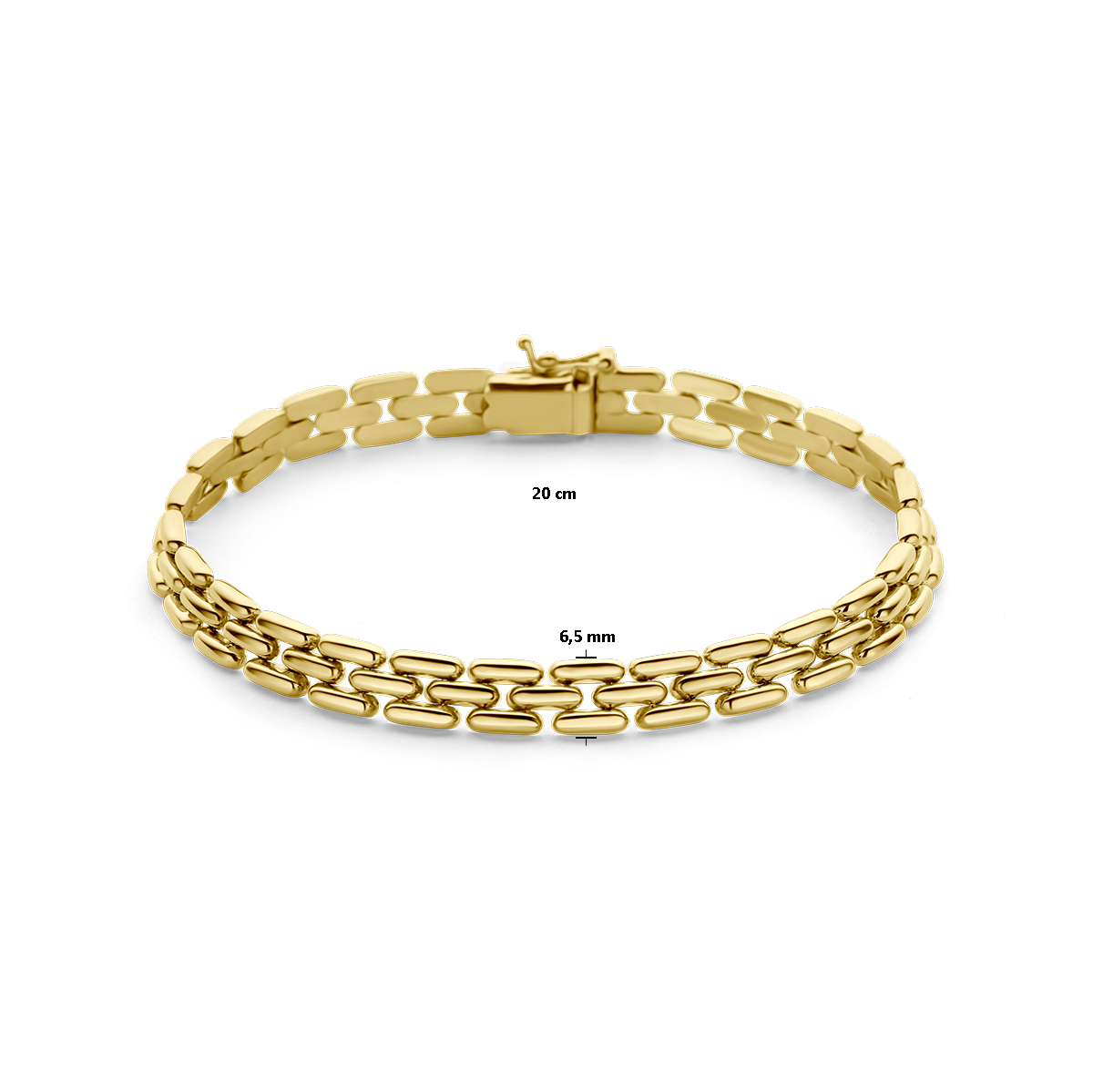 14k Geelgouden panter armband met een draaglengte van 20cm. De schakelbreedte is 6.5mm.