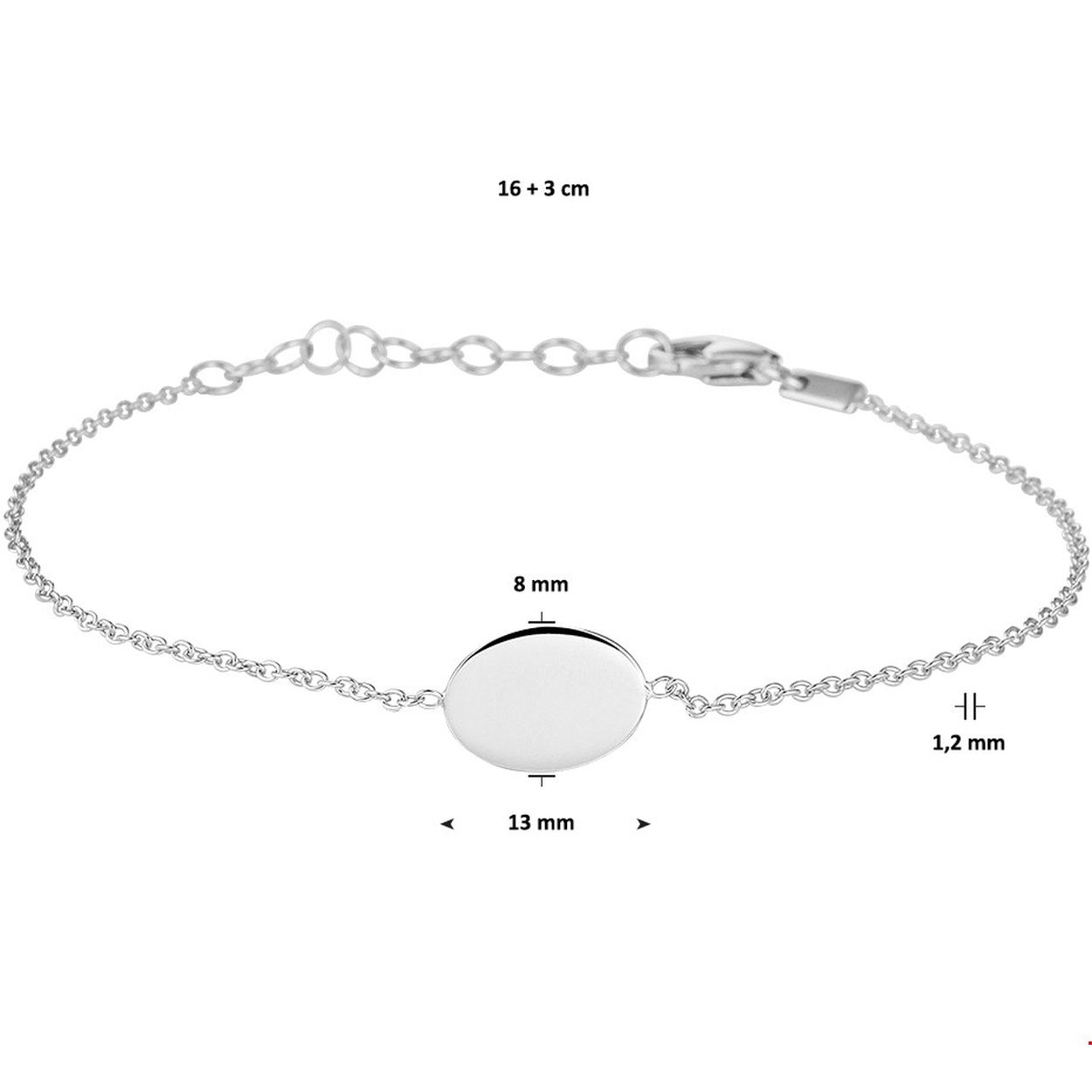 Beschrijving: Gerhodineerd zilveren anker armband uitgevoerd met een ovaaltje van 8x13mm. De armband heeft een draaglengte van 16cm met een extensie van 3cm en is voorzien van een karabijn sluiting. Info: Gerhodineerd zilver is door de rhodiumlaag beter bestand tegen verkleuren en krassen.