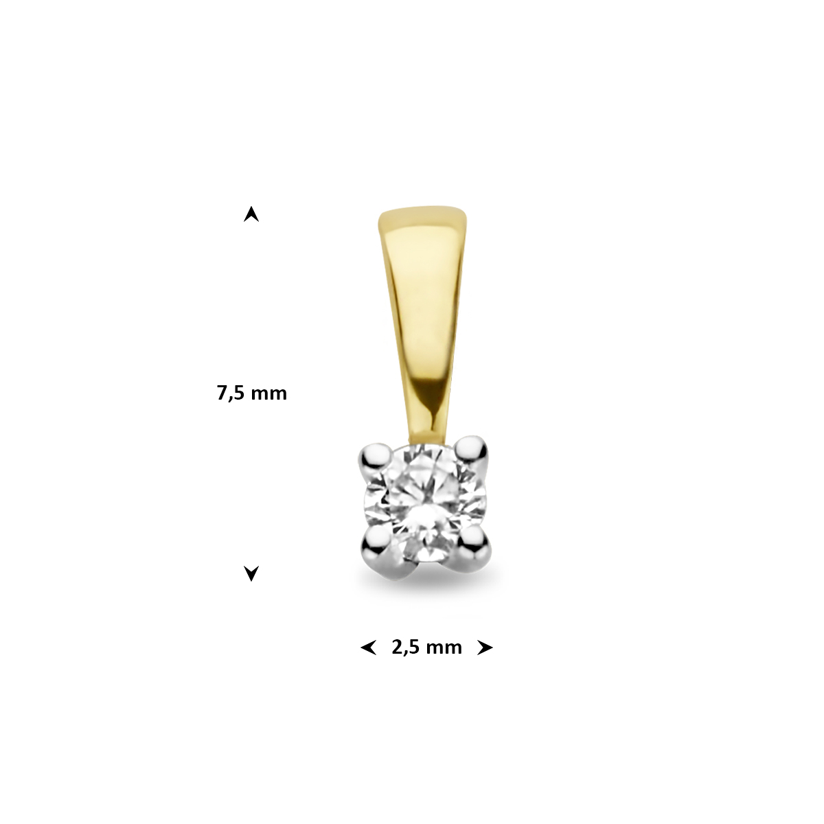 14k Bi-color geel- en witgouden hanger uitgevoerd met een schitterende diamant. 0,05crt H/Si