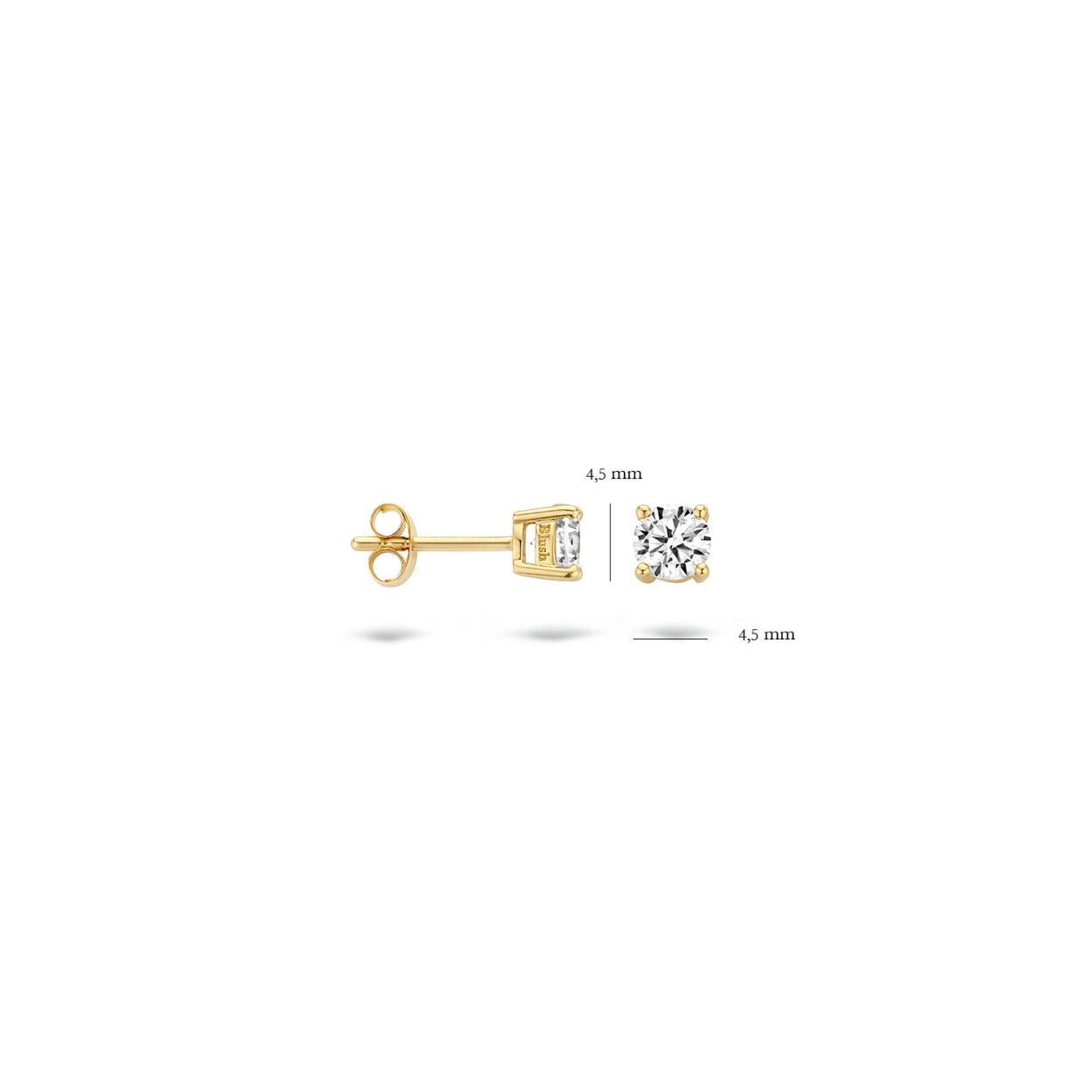 Charming classic basics. Deze geelgouden Blush oorstekers { 7213YZI } met witte Zirkonia hebben een elegante, tijdloze uitstraling. Het design is geschikt om eindeloos te combineren met je je favoriete sieraden uit de Blush collectie. De briljant geslepen Zirkonia�s van deze Blush oorstekers hebben een doorsnede van 4,5 mm.