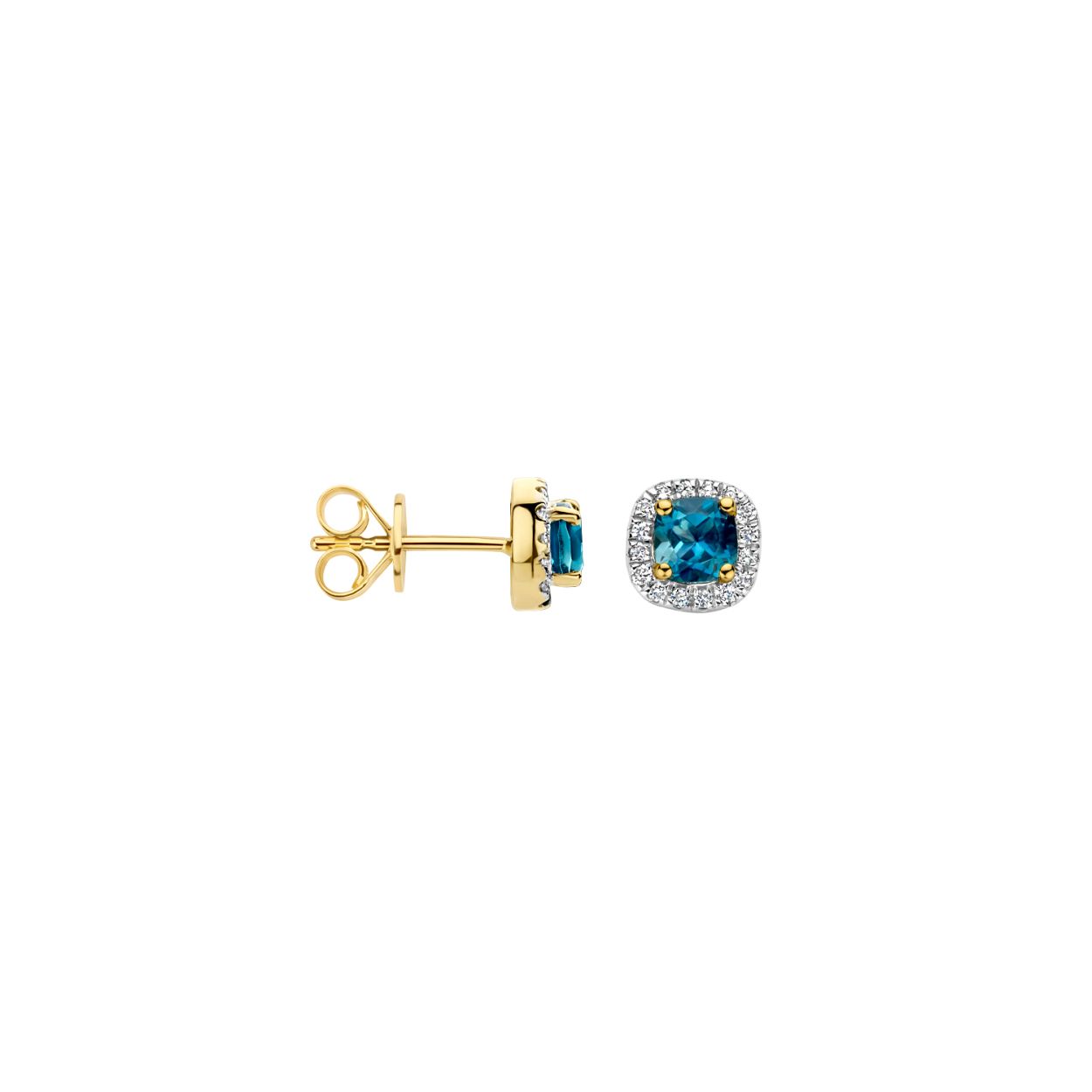 BLUSH OORSTKERS GEELGOUD MET DIAMANT EN LONDON BLUE TOPAAS 7629YDL