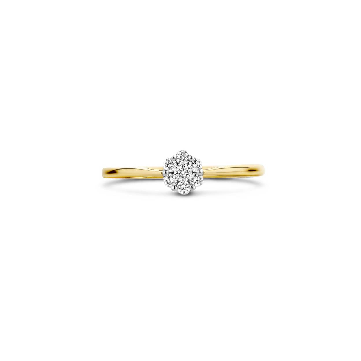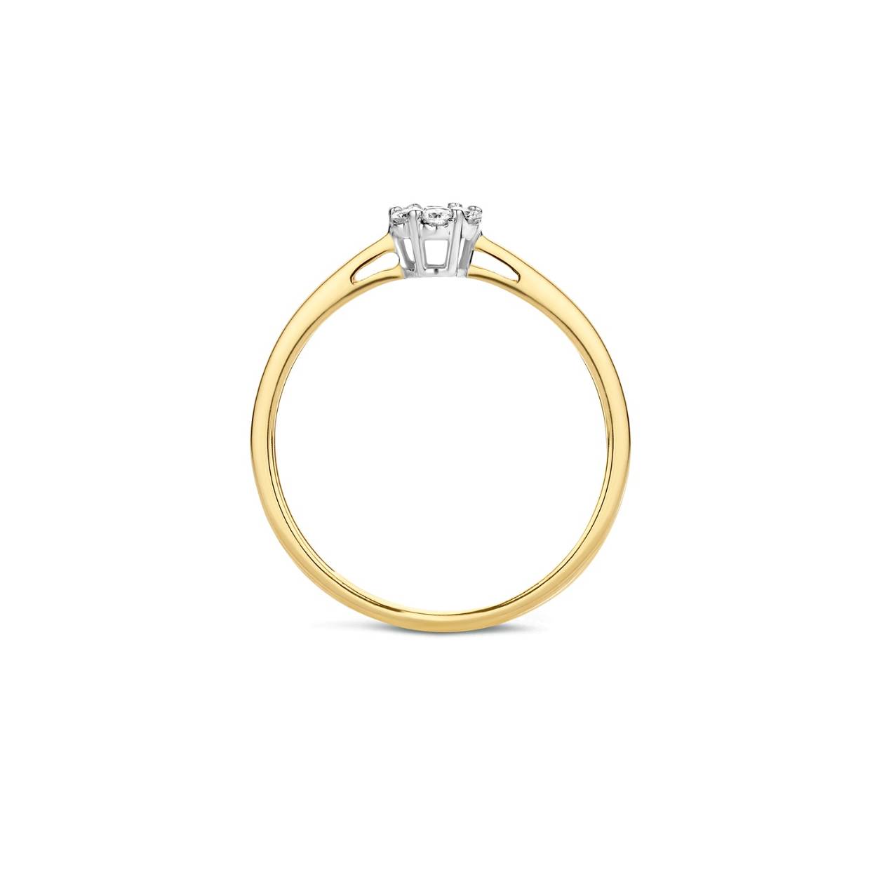 Deze elegante geel- en witgouden ring van 14k sprankelt met een briljant geslepen diamant. De band heeft een doorsnee van 1,5 mm en de diamant een karaatgewicht van 0,15. Prachtig om op zichzelf te dragen of om te combineren met één van onze andere (diamanten) aanschuifringen.