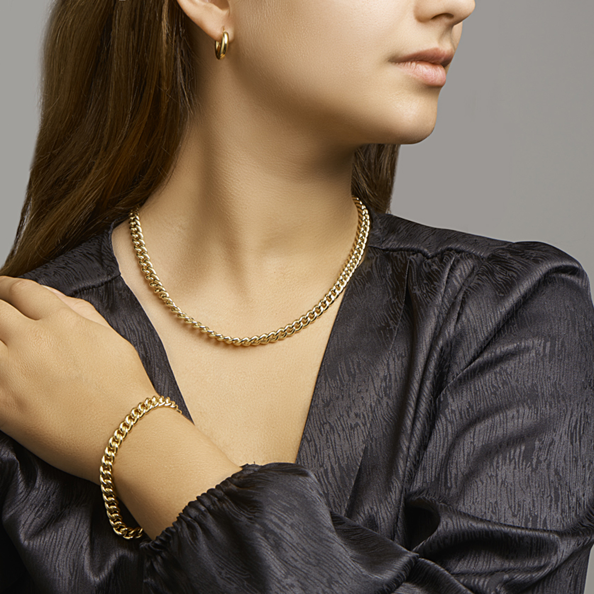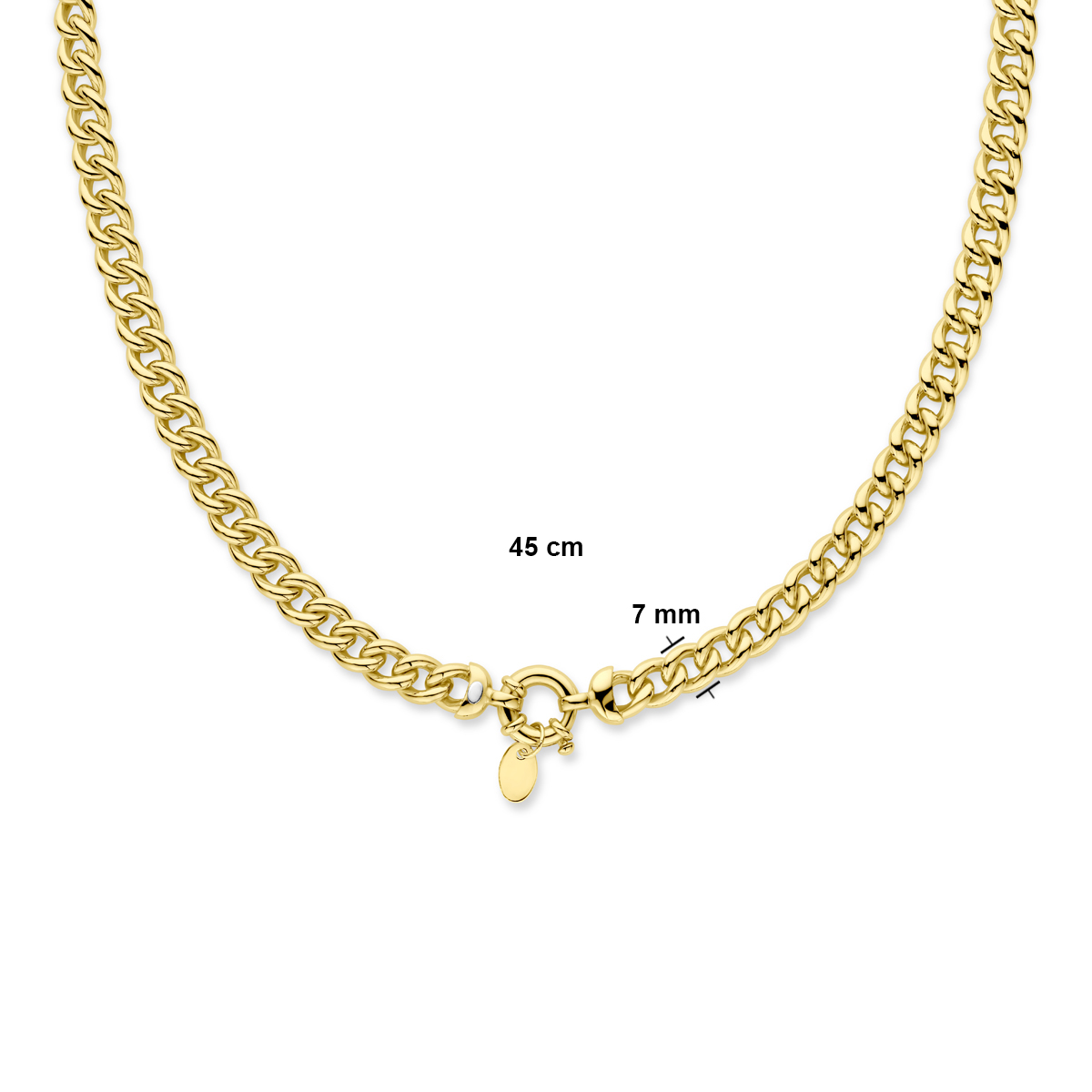 Sieraden van 14 karaat goud met daarin een kern van 925 zilver. Geelgouden collier met gourmette schakel. De schakelbreedte is 7.0mm.