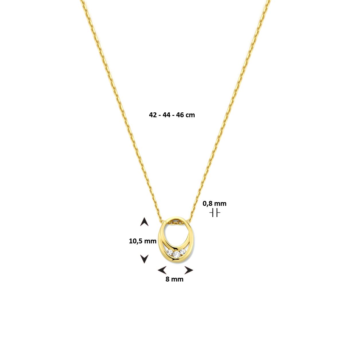 14k Geelgouden collier uitgevoerd met een schitterende zirkonia rij. Het collier heeft draaglengtes van 42, 44 en 46cm. De hanger heeft een afmeting van 10.5x8mm.