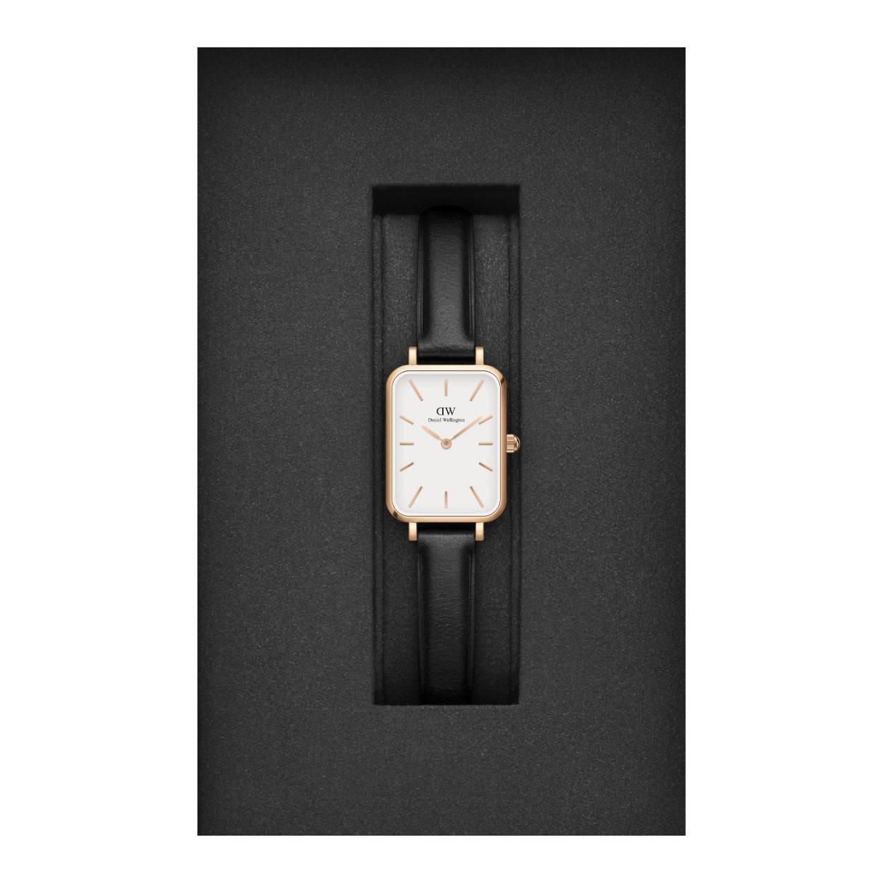 Trendy Chique dat is dit vierkante Daniel Wellington horloge met een rose goudkleurige kast en een mooie leren bvand