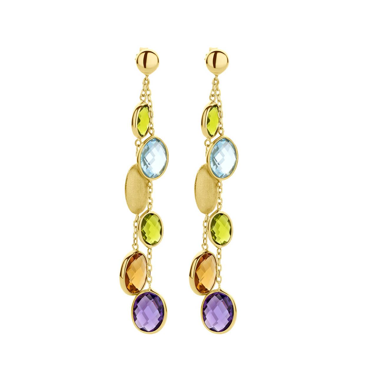 GEELGOUDEN OORHANGERS MET KLEURSTENEN