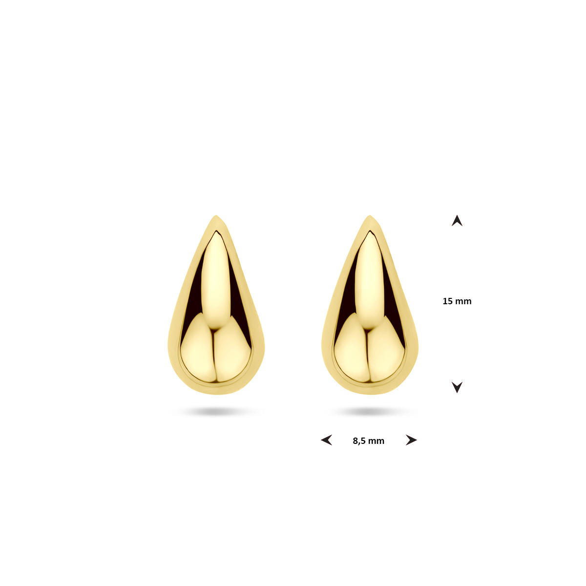 14k Geelgouden oorknoppen uitgevoerd in de vorm van een druppel. De oorknoppen hebben een afmeting van 15x8,5mm.