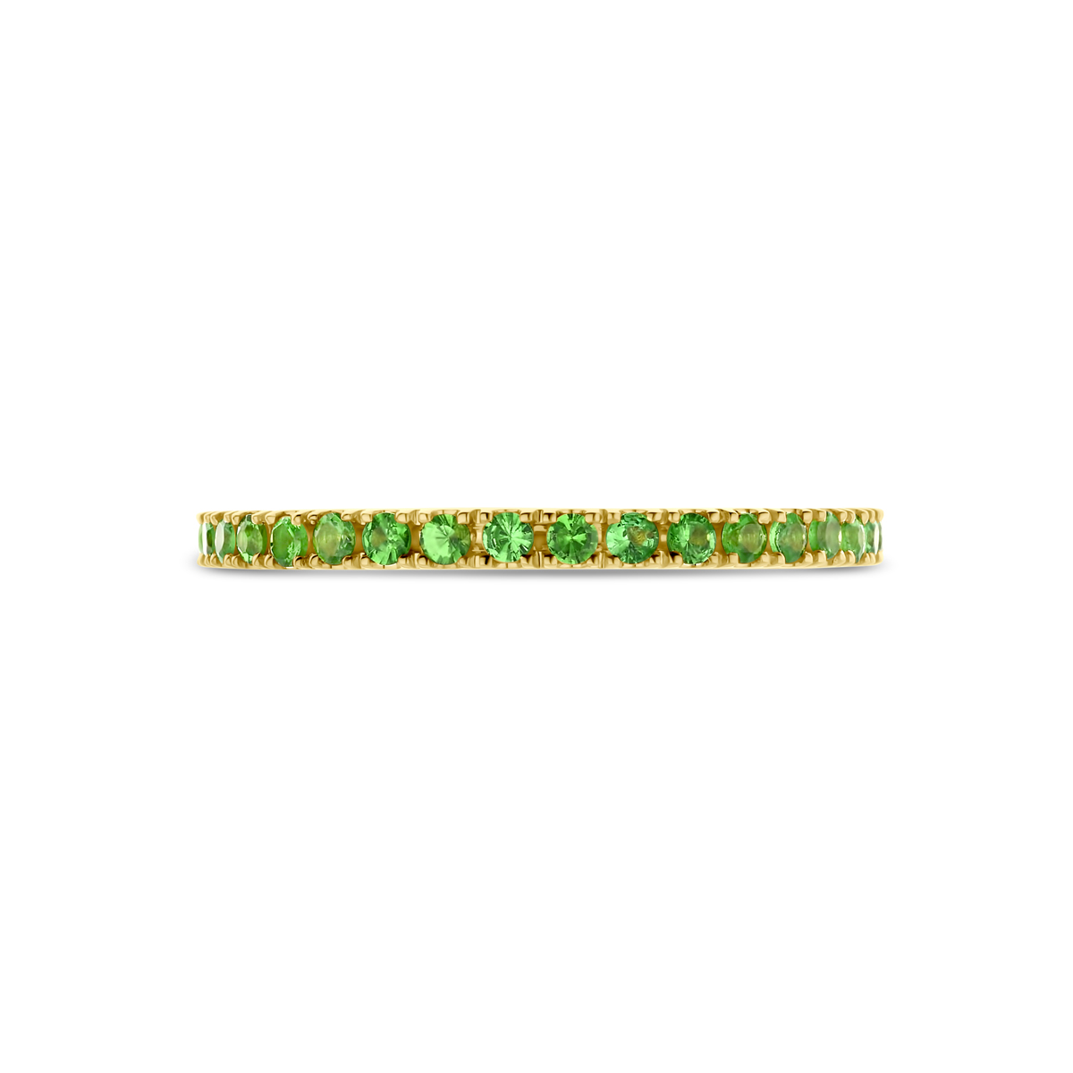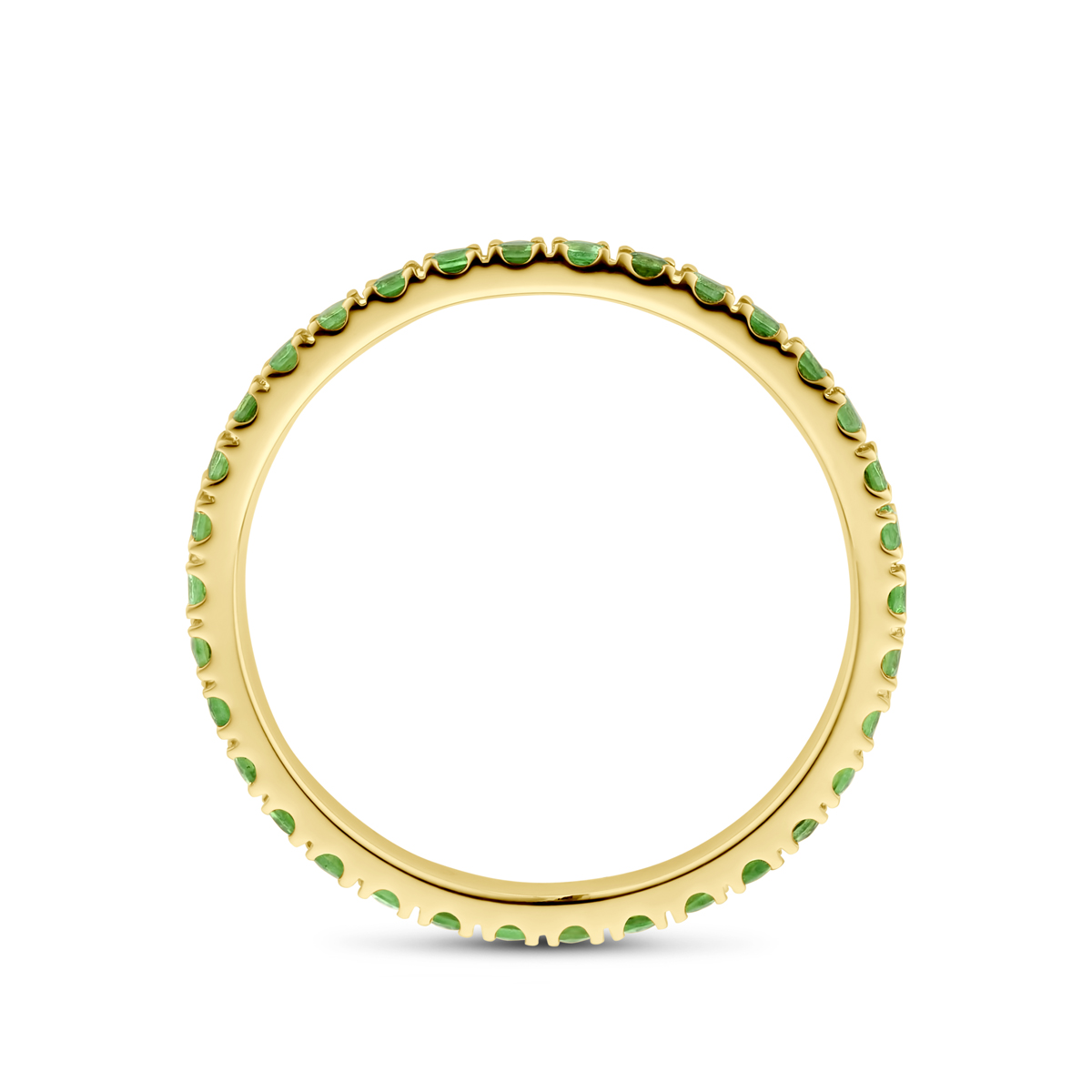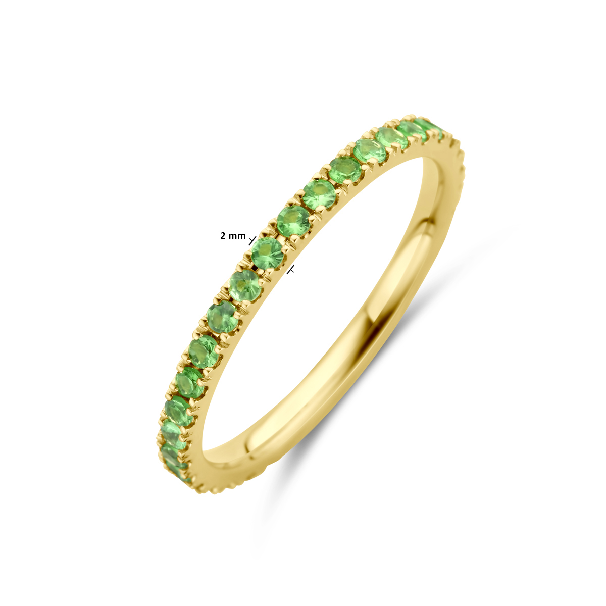 14k Geelgouden ring uitgevoerd met tsavoriet. De ring heeft een breedte van 2mm.