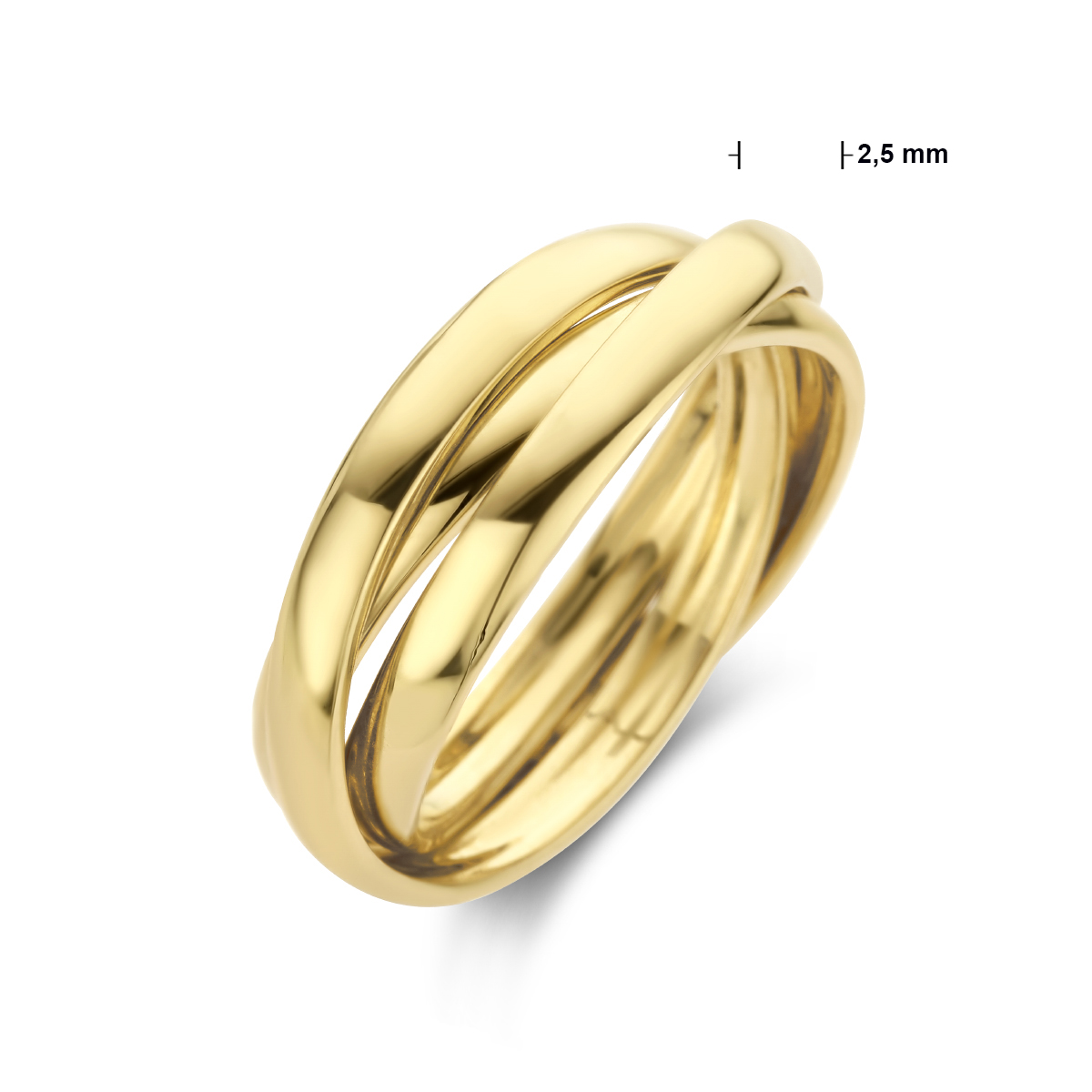 14k Geelgouden ring. De ring heeft 3x een breedte van 2.5mm.