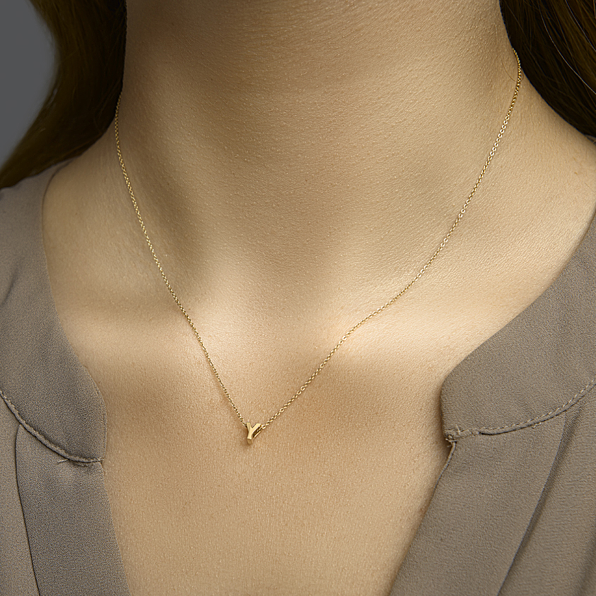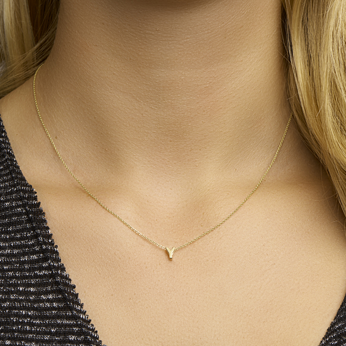 14k Geelgouden hanger uitgevoerd in de letter Y. De hanger heeft een afmeting van 5.5x4.5mm.