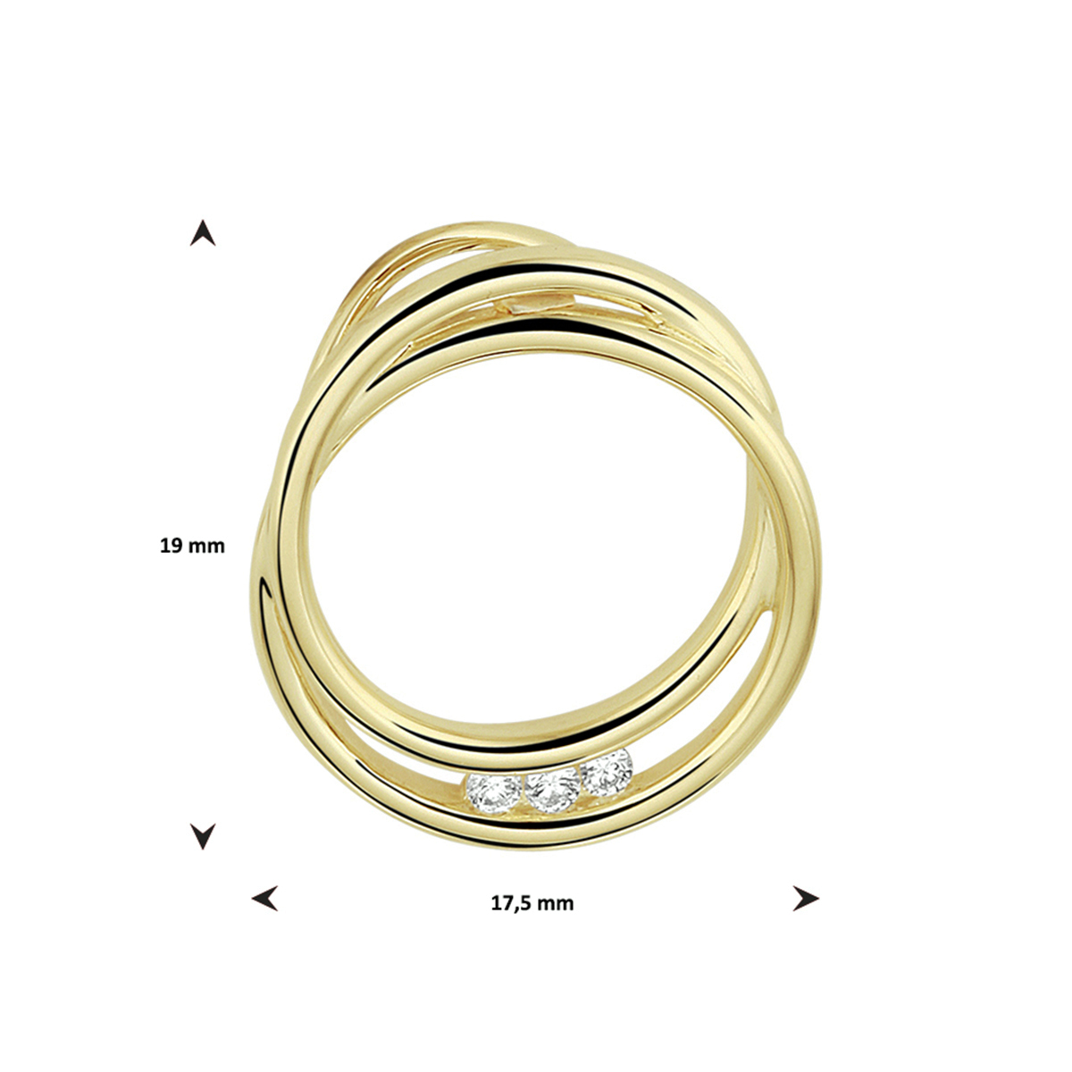 14k Geelgouden hanger uitgevoerd met een schitterende diamant rij. De hanger heeft een afmeting van 19x17.5mm.