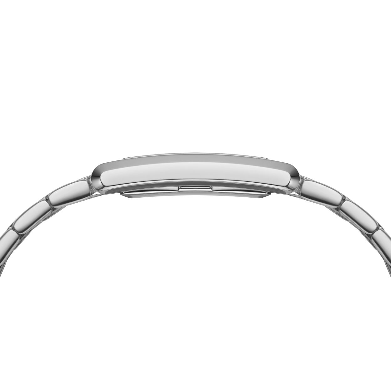 Met strakke geometrische randen en twee maten om uit te kiezen, brengt onze Bound-collectie perfecte symmetrie aan je pols. De gebogen rechthoekige kast van dit zilveren horloge komt exact overeen met de breedte van de band met 9 schakels, waardoor je een naadloos geïntegreerde wijzerplaat krijgt.