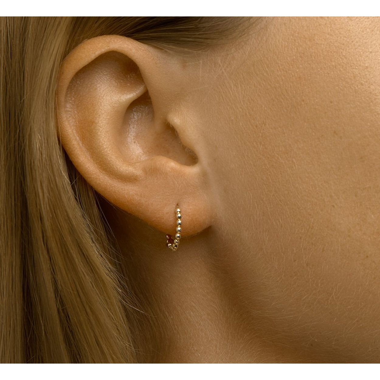14k Geelgouden klapoorringen uitgevoerd met bolletjes. De oorringen hebben een afmeting van 12.5x1.5mm.