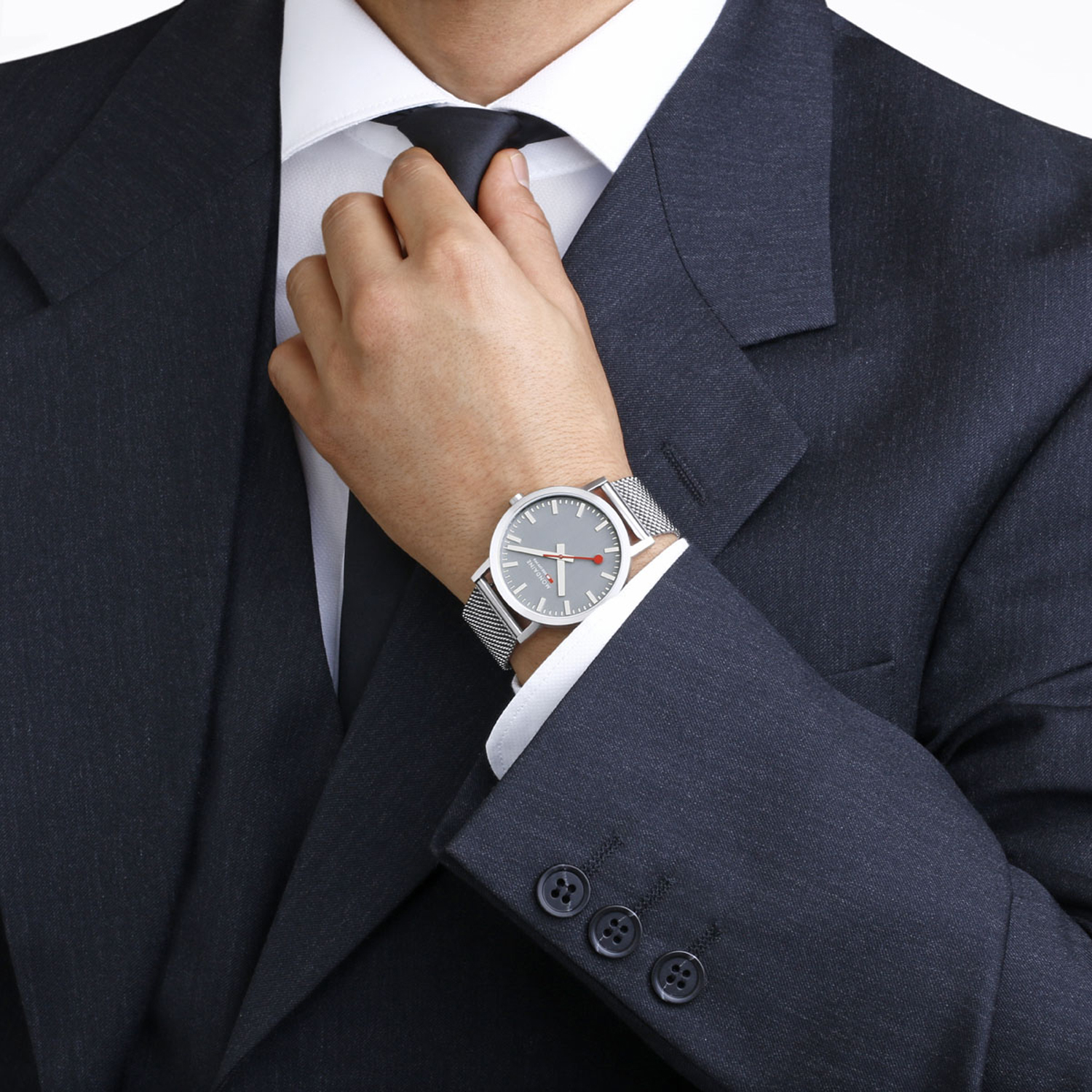 The Official Swiss Railway Watch. Gebaseerd op de offici�le stationsklok van de Zwitserse spoorwegen is 30 jaar geleden de horlogelijn onder het merk Mondaine opgezet. Zwitserse kwaliteitsuurwerken net zo punctueel als de Zwitserse treinen. Een echte design klassieker met een unieke wijzerplaat en de wereldberoemde rode secondewijzer met bolletje. Herkenbaar uit duizenden.