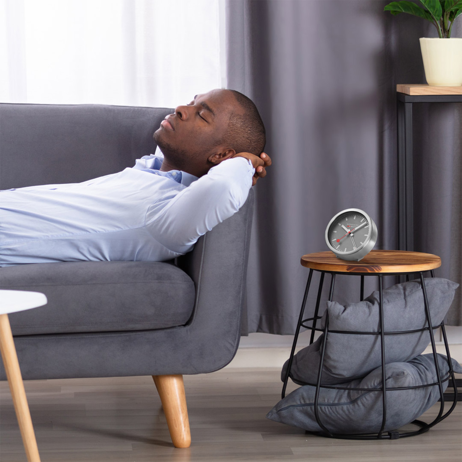 mondaine miniklok 12.5cm mat-grijs-aluminium