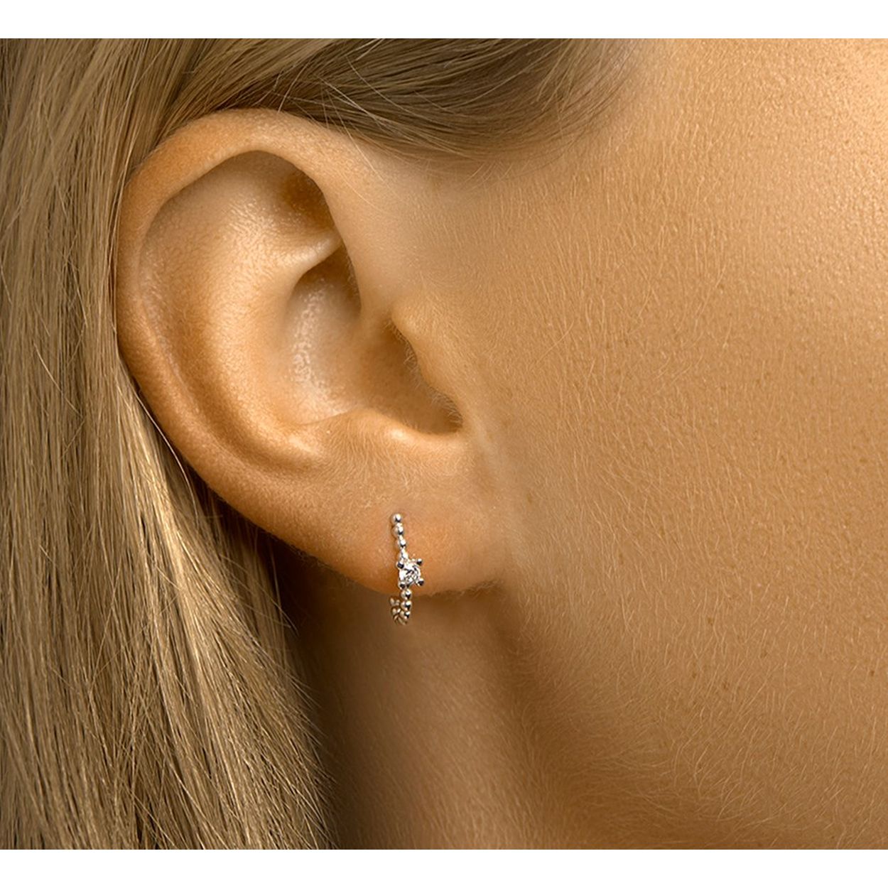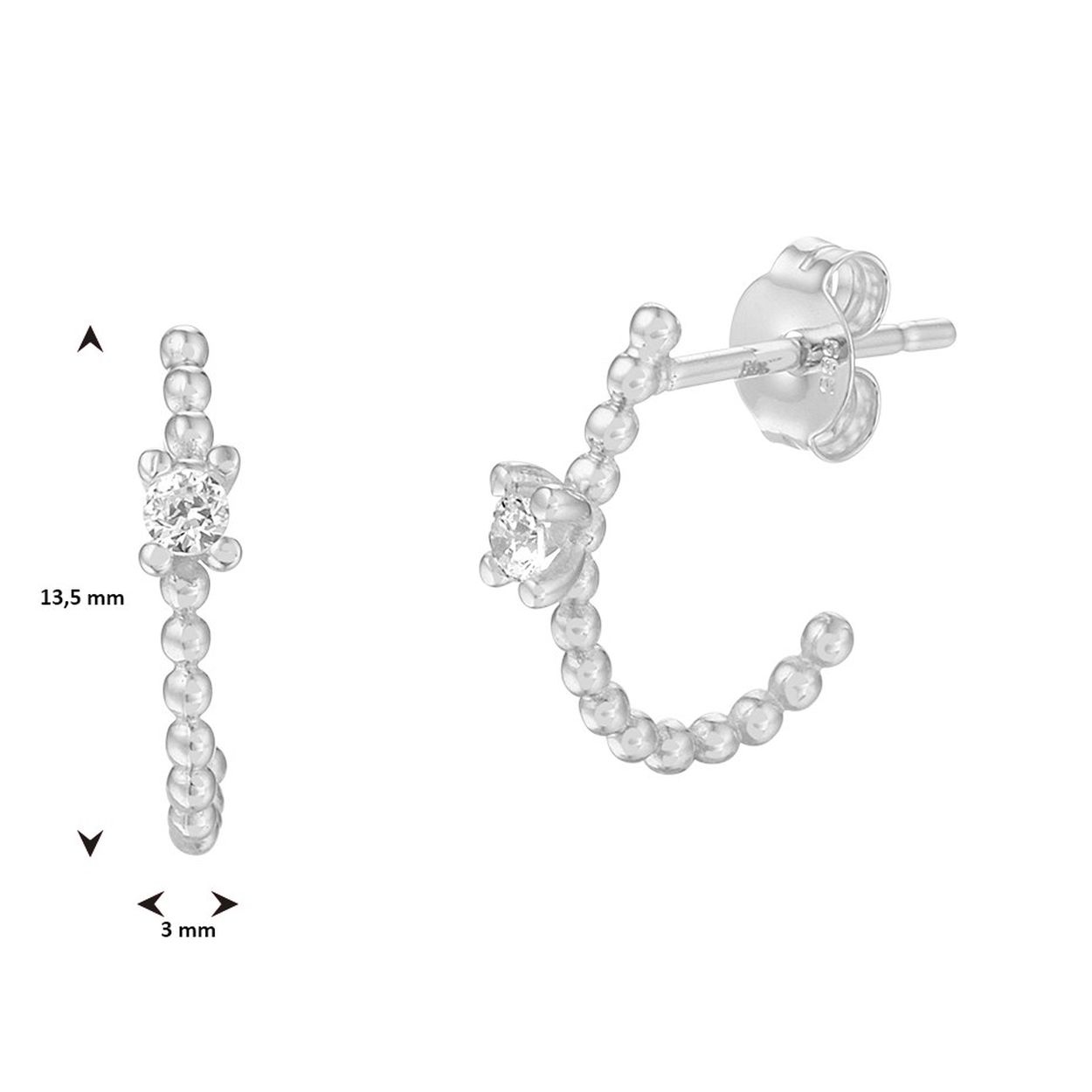 14k Witgouden oorknoppen uitgevoerd met bolletjes en een heldere zirkonia. De oorknoppen hebben een afmeting van 13.5x3mm.