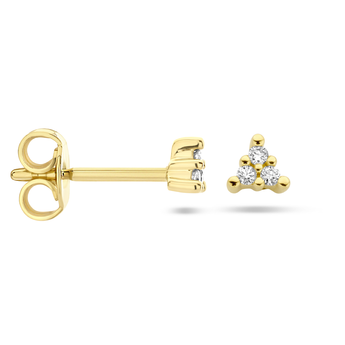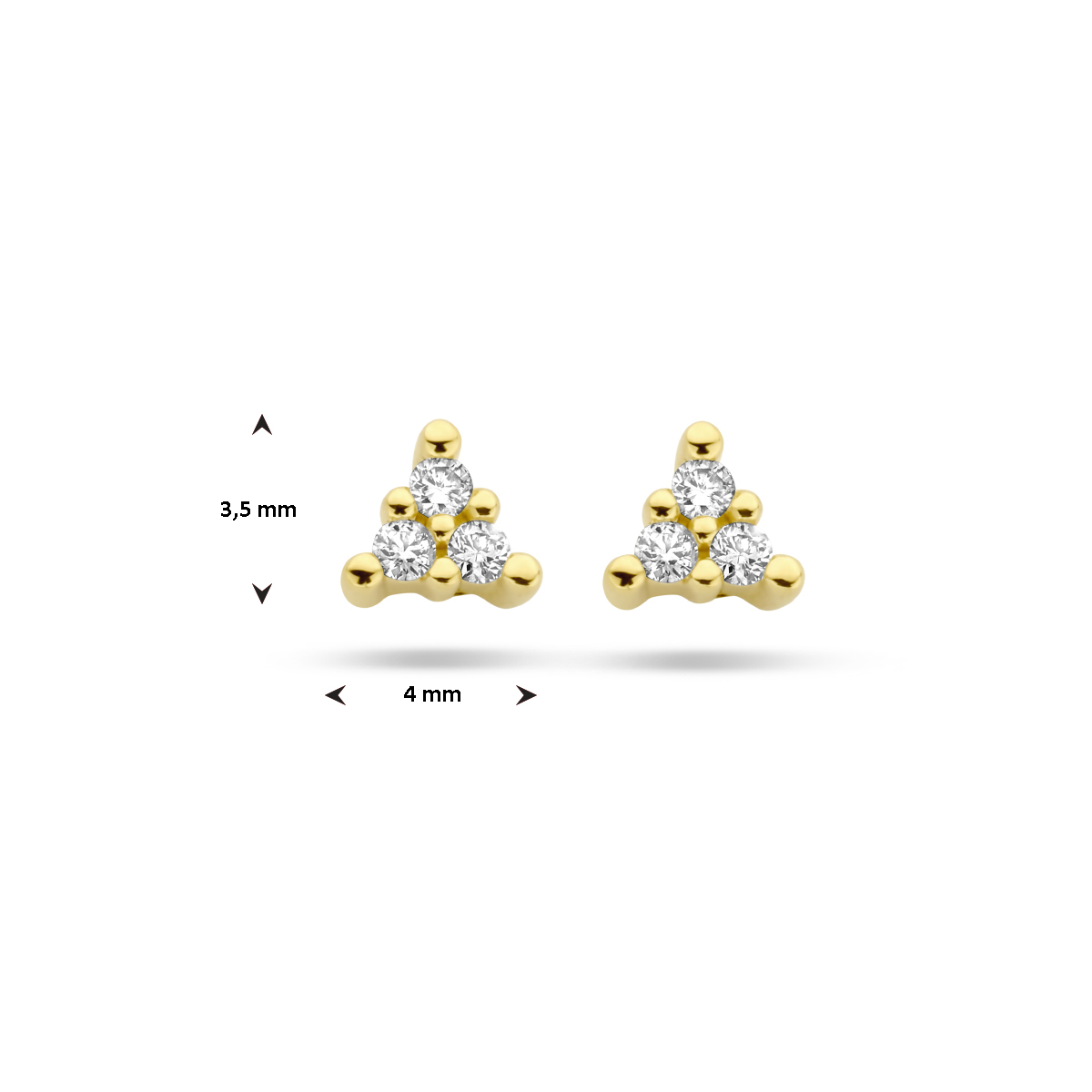 14k Geelgouden oorknoppen uitgevoerd met schitterende diamanten. De oorknoppen hebben een afmeting van 3.5x4mm.