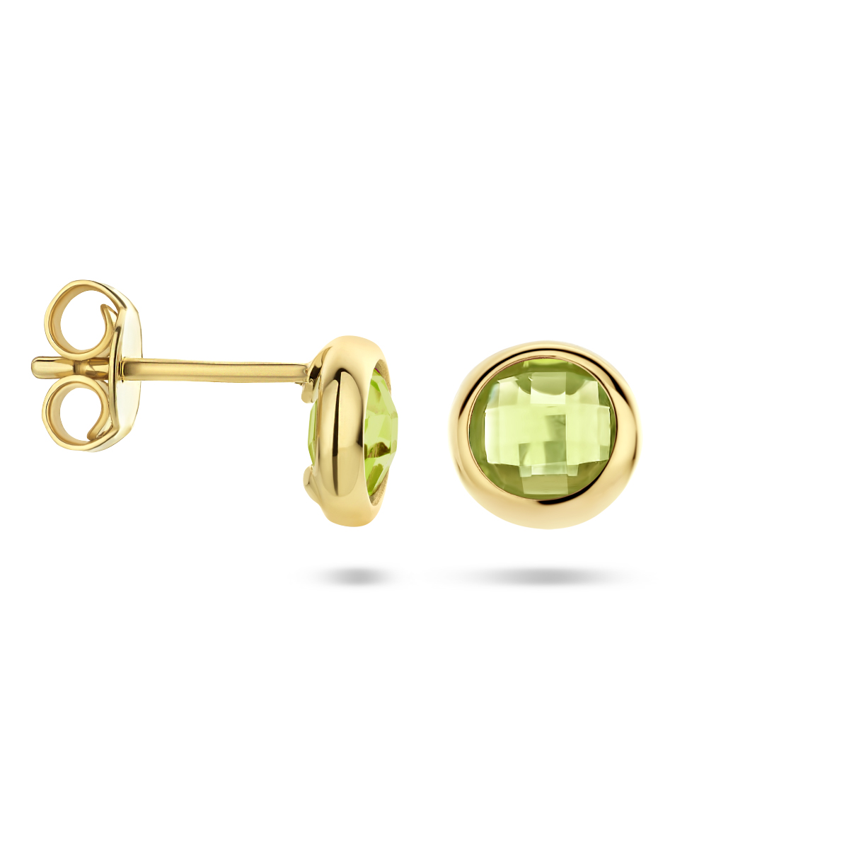 14k Geelgouden oorknoppen uitgevoerd met schitterende peridot. De oorknoppen hebben een diameter van 7.5mm.