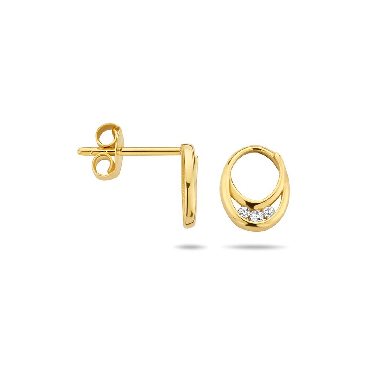 14k Geelgouden oorknoppen uitgevoerd met een schitterende zirkonia rij. De oorknoppen hebben een afmeting van 9x7mm.