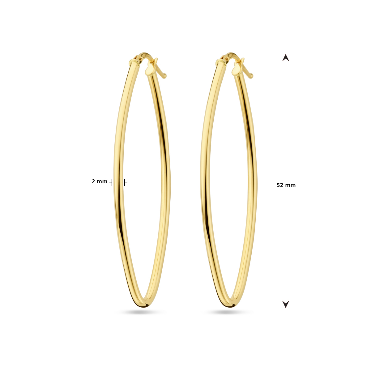 14k Geelgouden oorringen met een afmeting van 52x20mm. Dikte is 2mm.