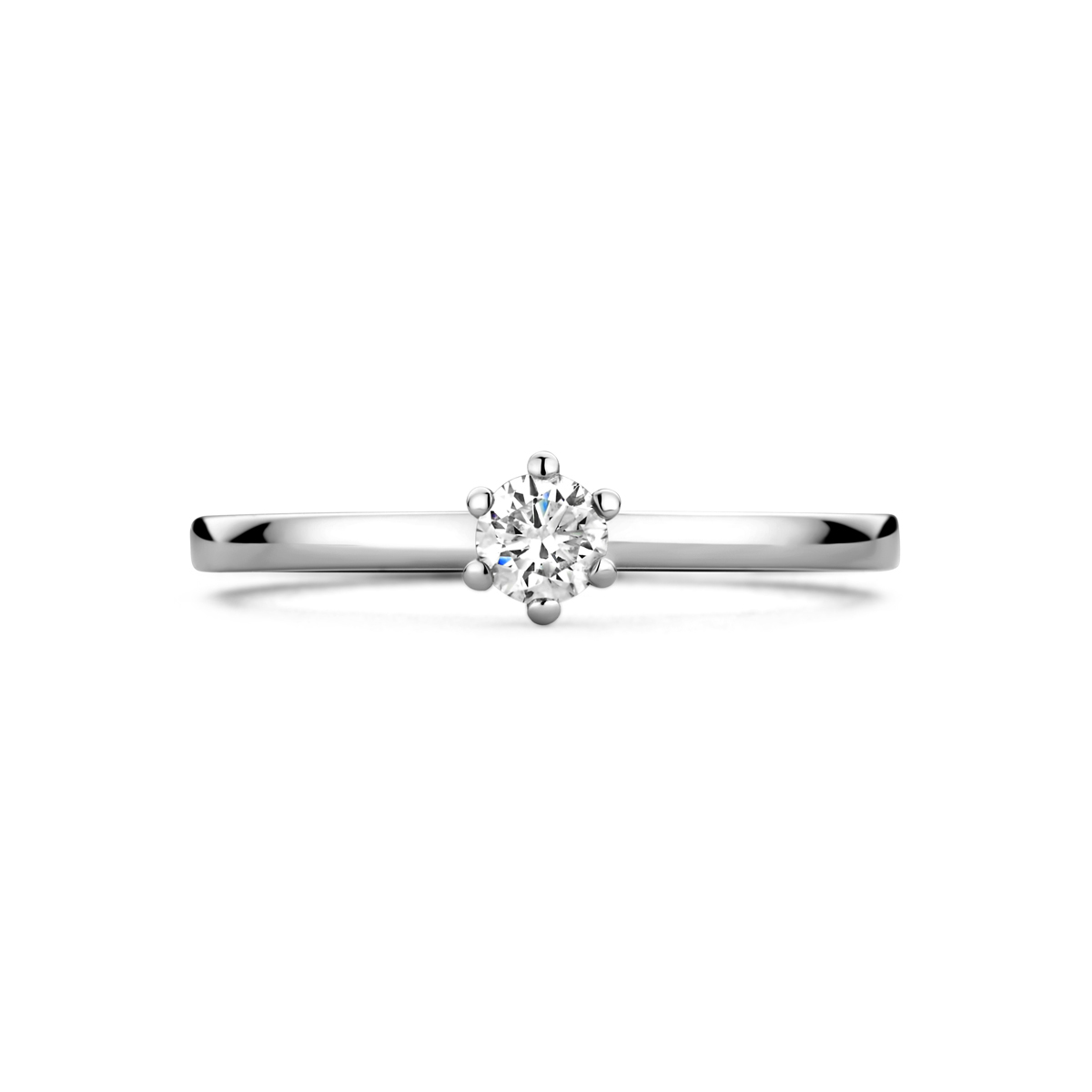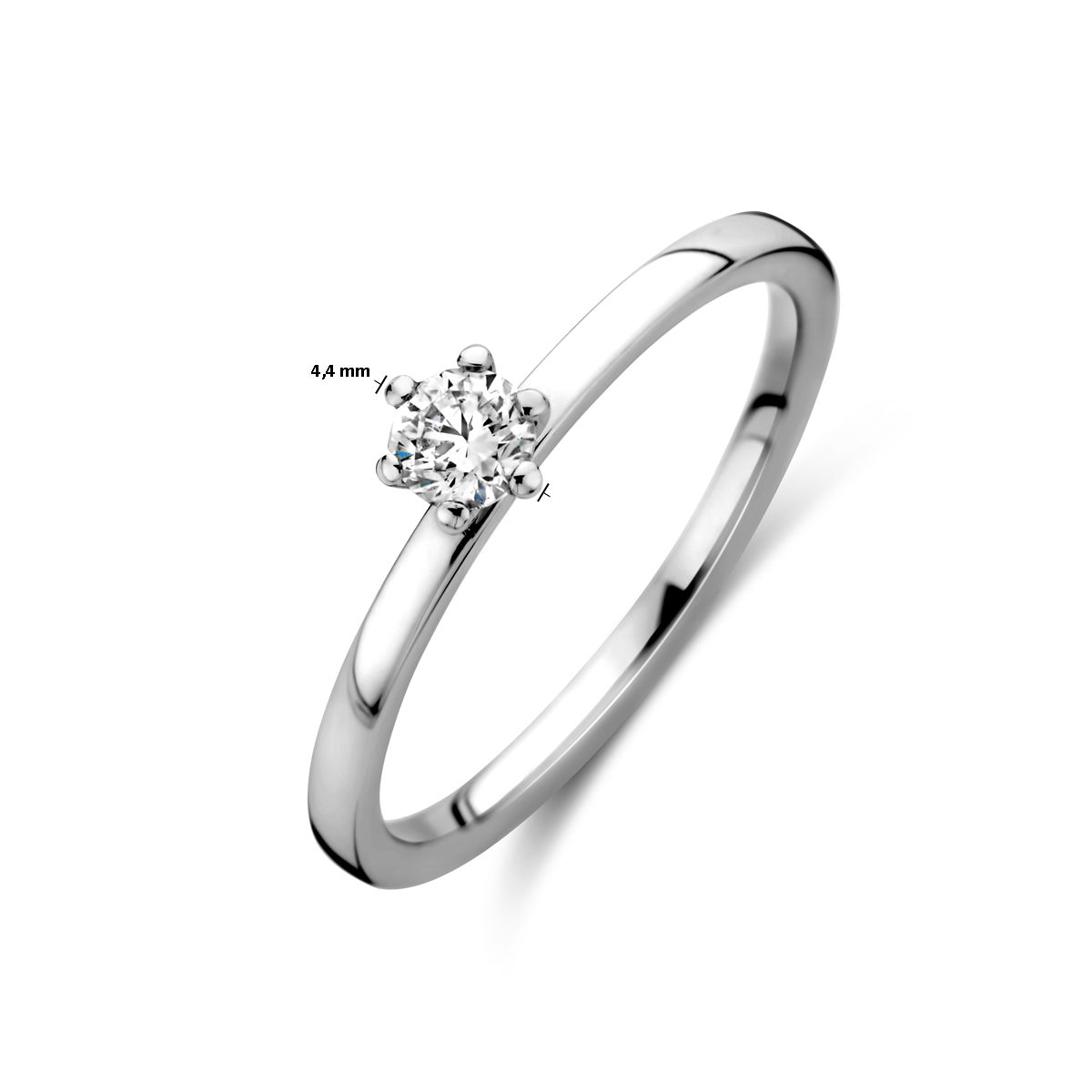 Platina ring uitgevoerd met diamant. De ring heeft een breedte van 4.4mm.