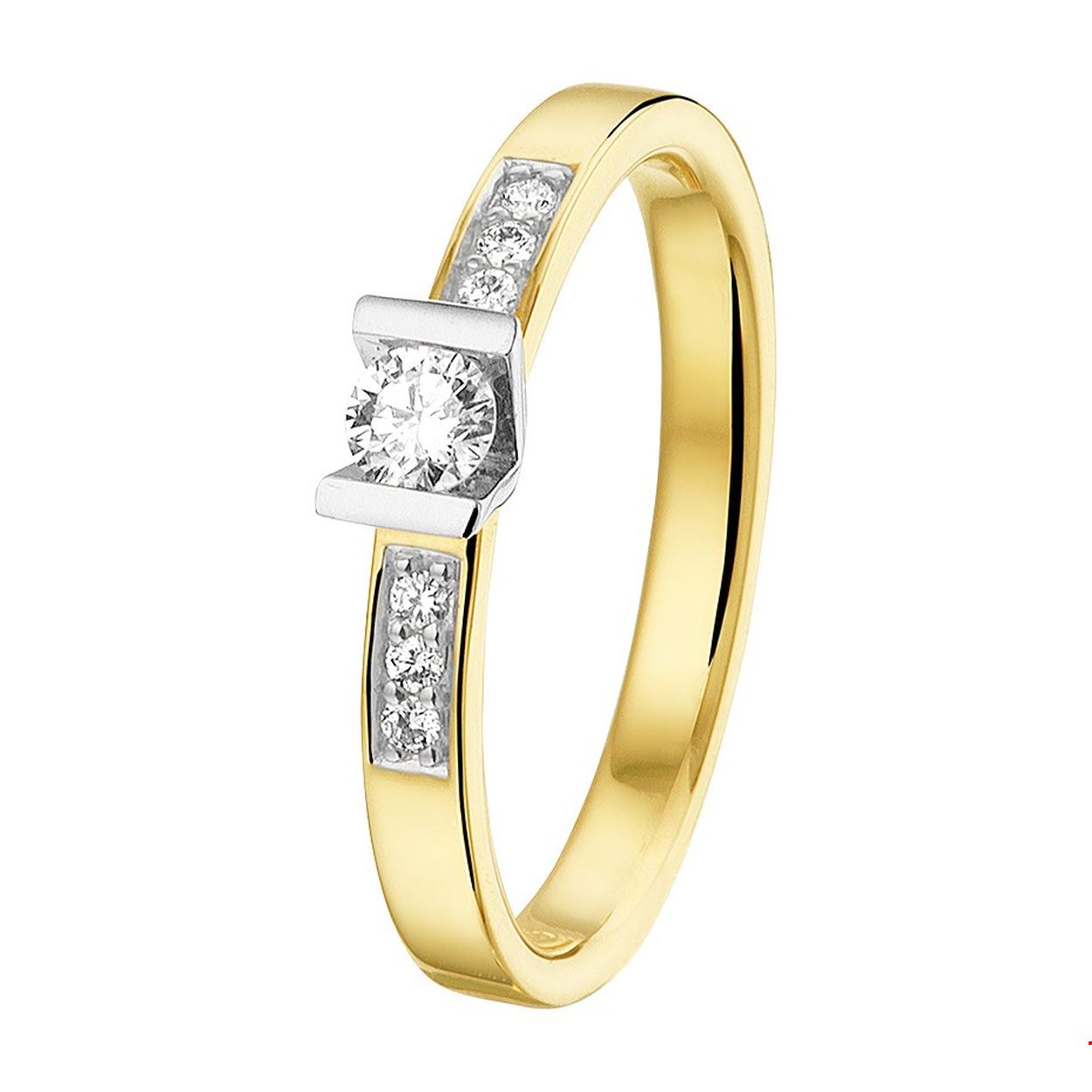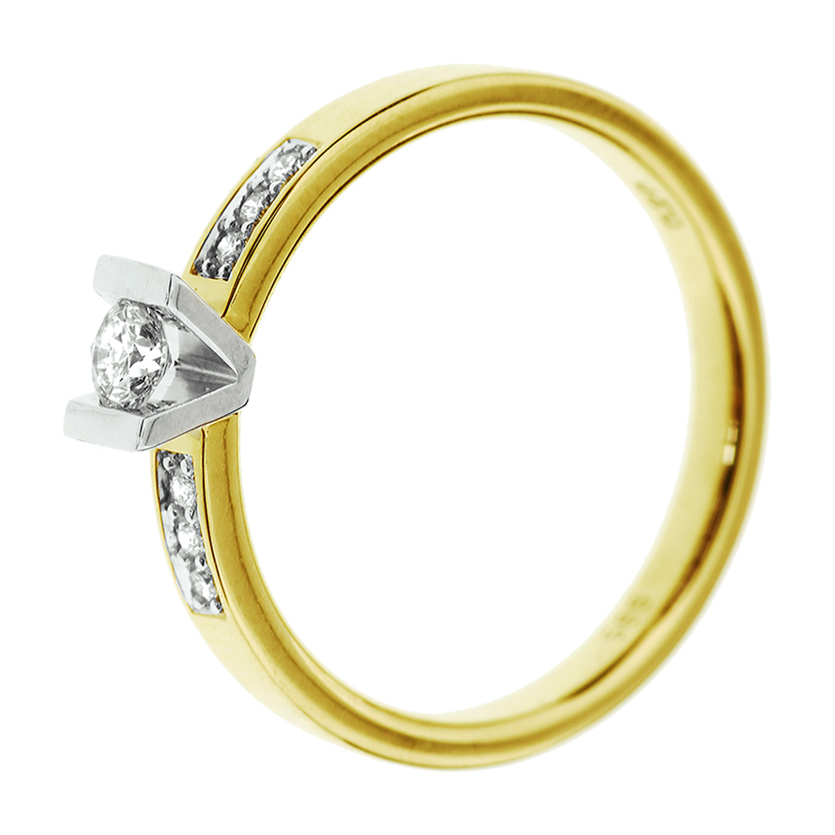 BICOLOR RING MET 7 BRILLIANTJES W/SI 0,20 CRT