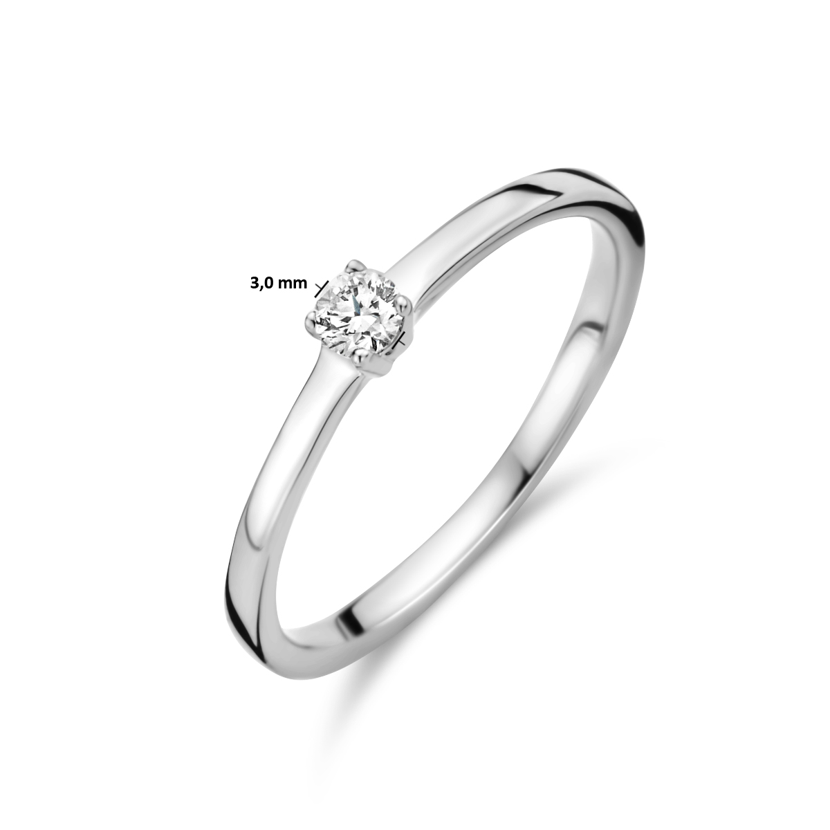 14k Witgouden ring uitgevoerd met een schitterende diamant.