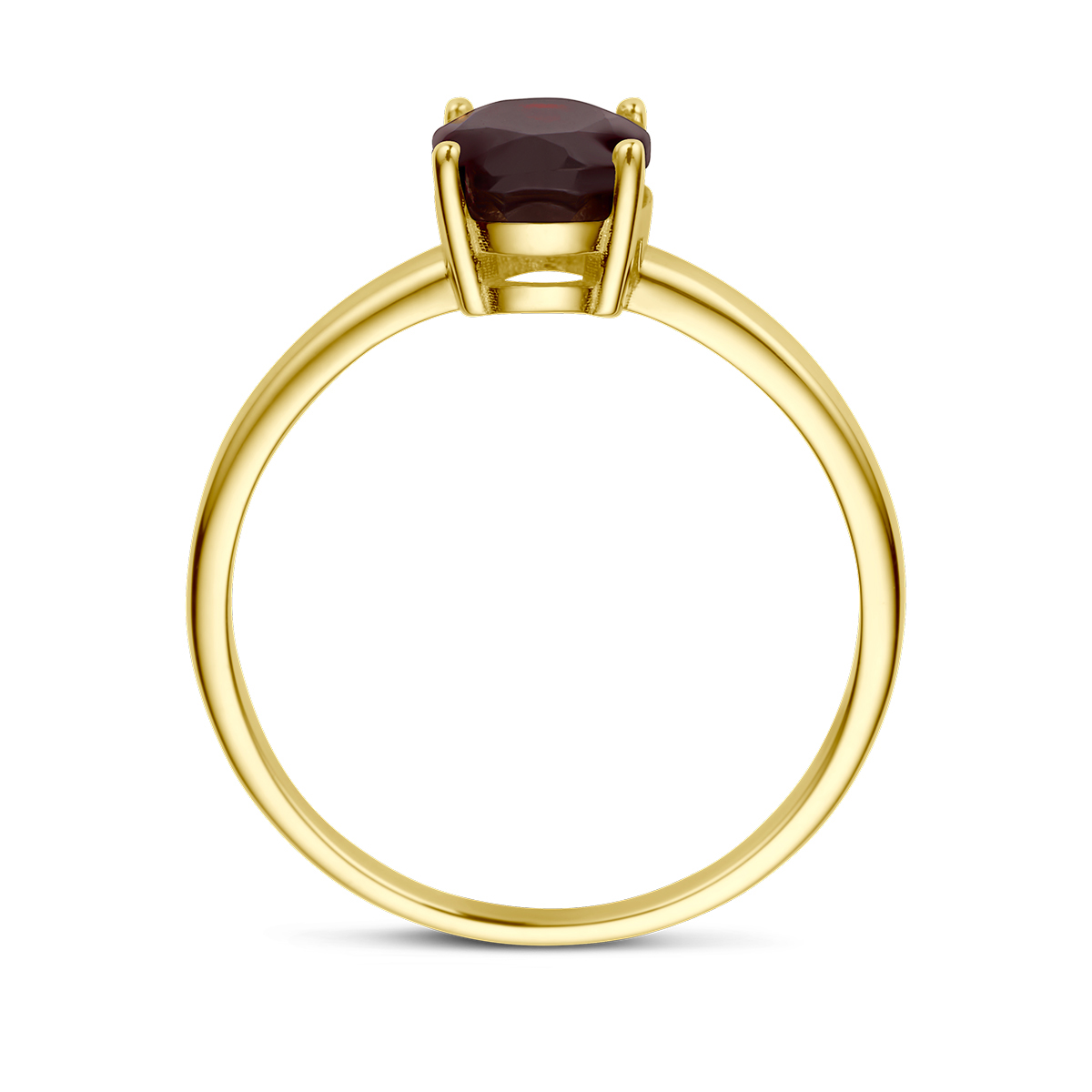 14k Geelgouden ring uitgevoerd met granaat. De steen heeft een afmeting van 8x6mm.