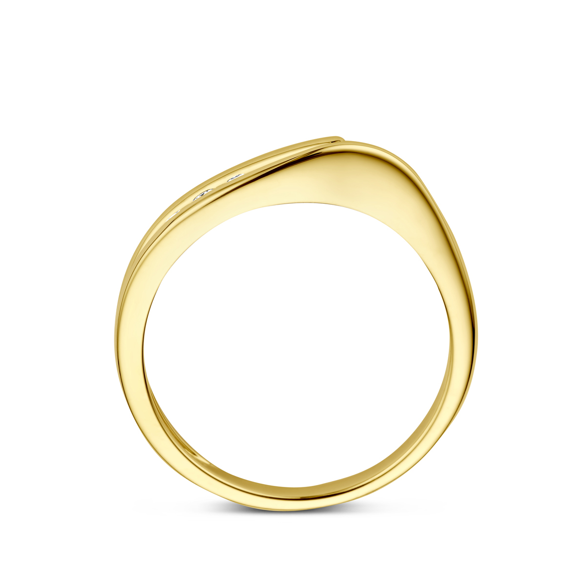 14k Geelgouden ring uitgevoerd met diamanten. De ring heeft een breedte van 4.5mm.