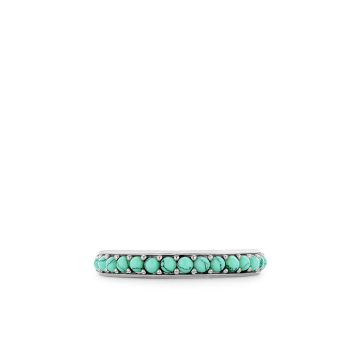 Deze ring uit de TI SENTO - Milano collectie is vervaardigd uit gerhodineerd sterling zilver en ��n rij met kristallen. Deze zijn geslepen in een briljantvorm en zijn met de hand gezet. De strakke uitvoering van de ring zorgt voor een naadloze aansluiting op andere ringen. Dit sieraad is eenvoudig te combineren met andere ringen. De turquoise kleurige look geeft de combinatie met andere ringen een extra twist. In de TI SENTO collectie zijn vele ringen te vinden waar combinaties mee kunnen worden gemaakt volgens het TI SENTO Mix & Match concept. Deze mooie ring is ook perfect te dragen met de bijpassende oorbellen en ketting.